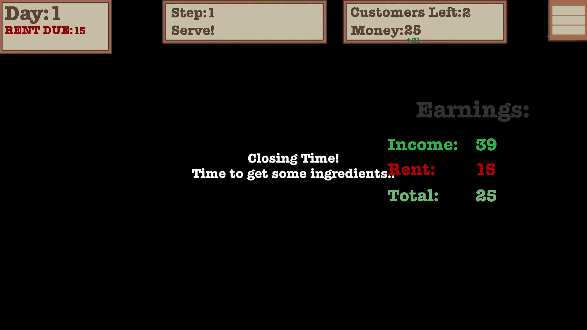 You are tasked with preparing and serving various meals to customers inside your establishment. At the end of each day, the taxman comes to take your hard earned cash away from you, so be prepared to earn enough to keep business booming!